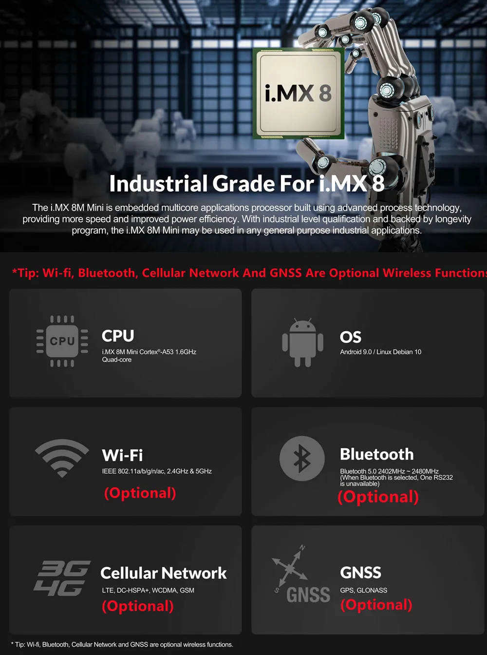 - CPU: NXP i.MX 8M Mini, ARM® Cortex®-A53 Quad-Core 1.6GHz
