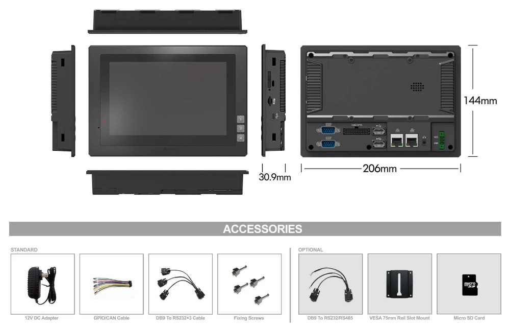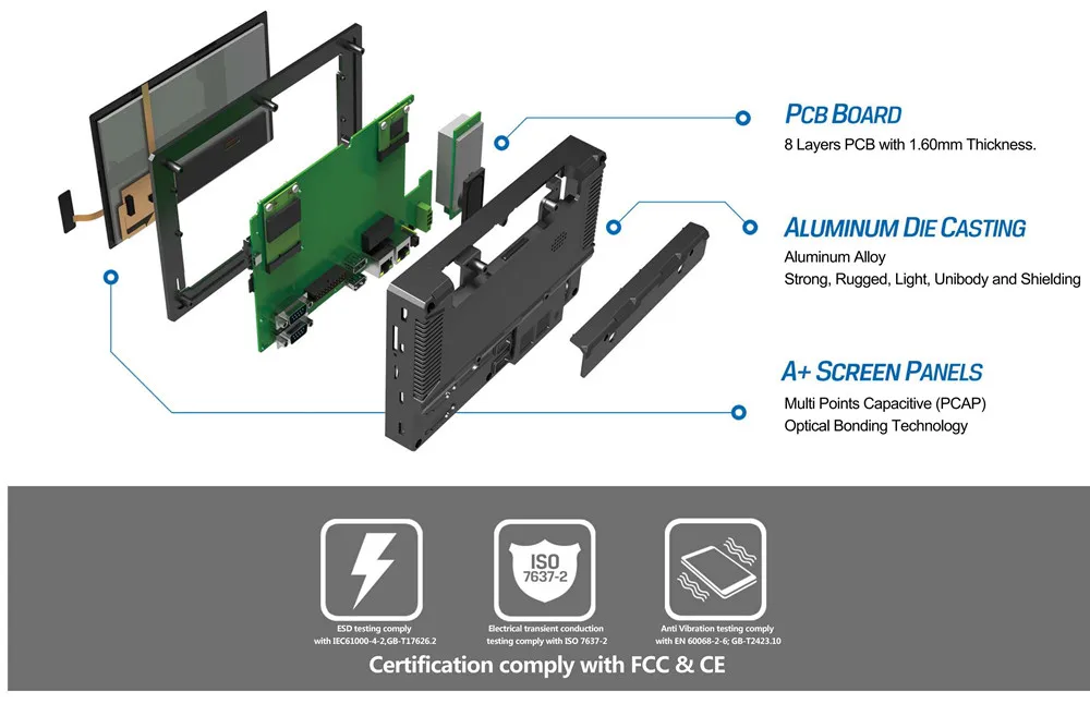 | Display | LCD | 1280×800, 800 nit, 170°/170° viewing angle |