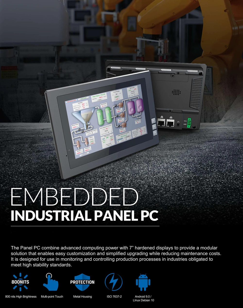 2022 Original K701 Industrial Linux Debian Mini PC Panel All In One Poe Wall Mount Embedded Pc 7" I.MAX 8 4GB RAM GPIO RS232 Com